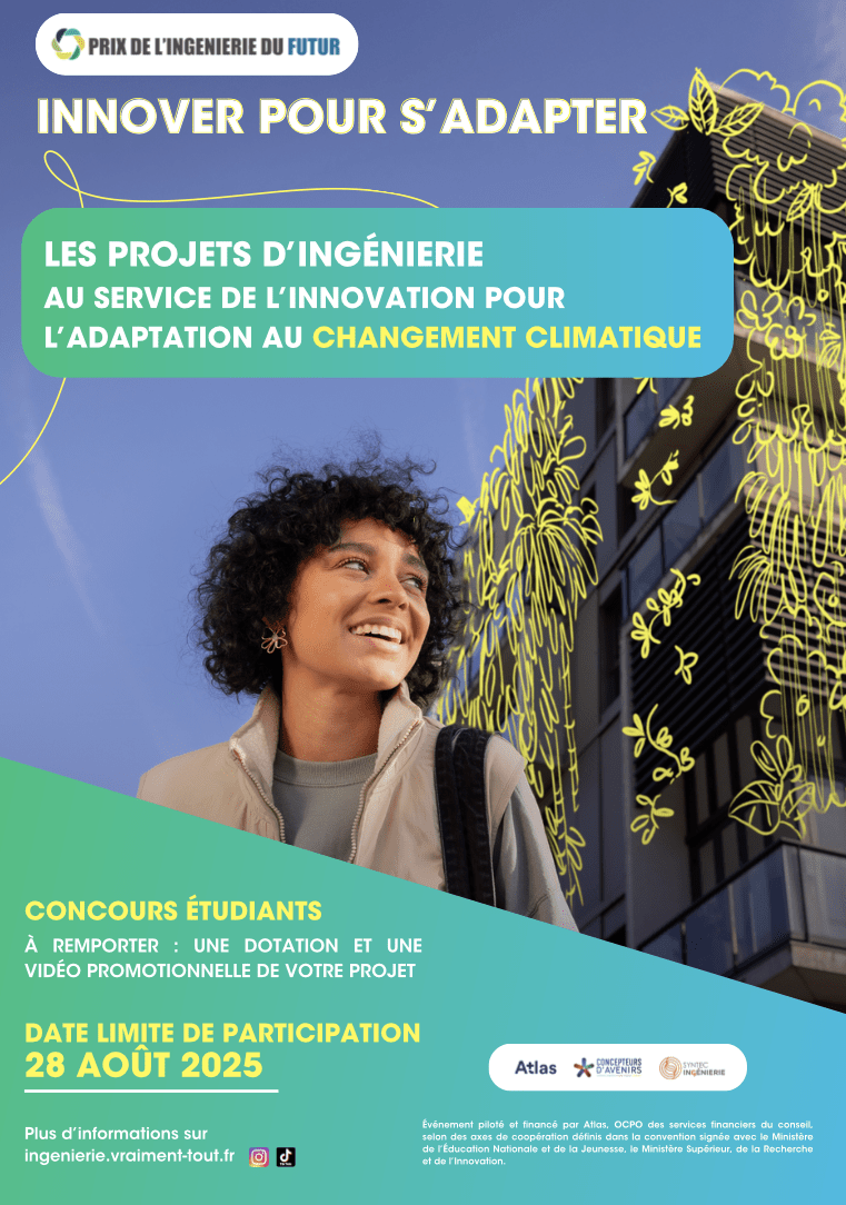 That's why the Future Engineering Award, organized by Syntec-Ingénierie and its institutional partners, invites students to design a project that combines adaptability and innovation in the industry or construction sectors (including energy, technology consulting & engineering, geotechnics, buildings, infrastructure, environment & biodiversity...).